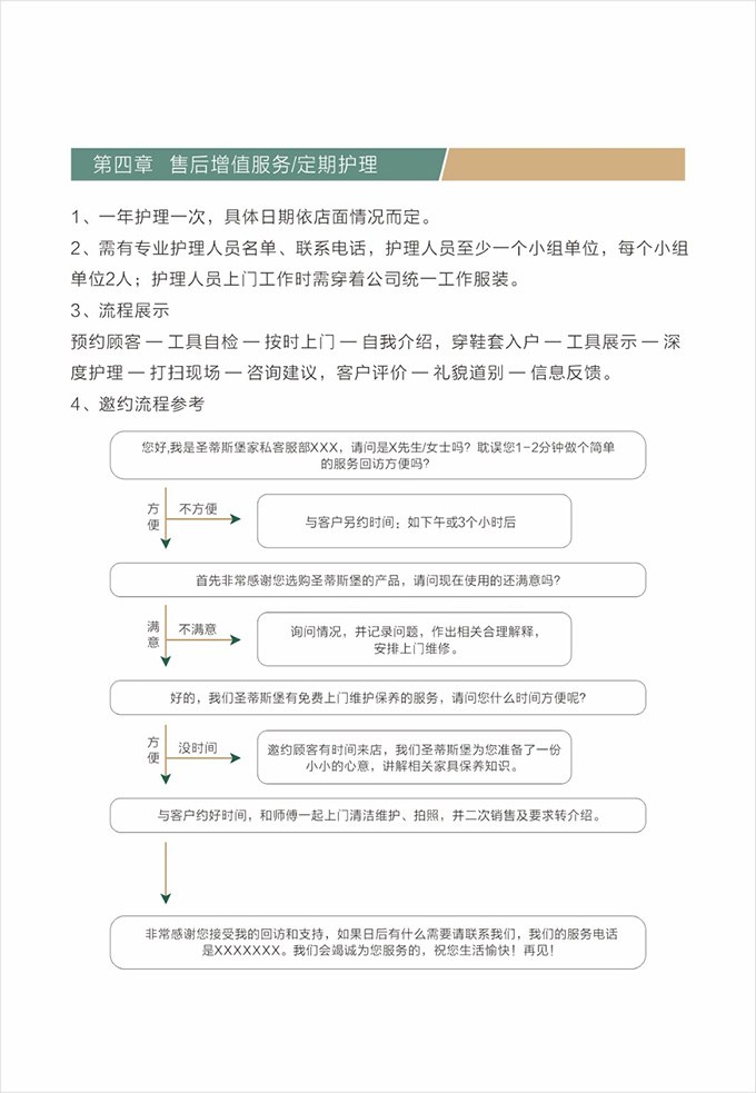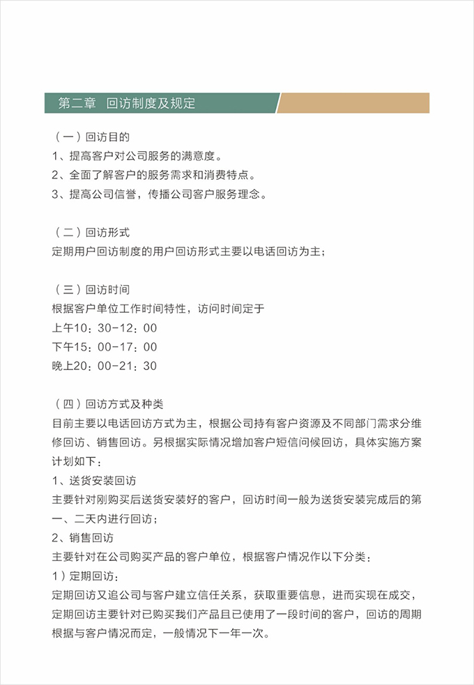 心理准备:充分理解顾客信息,对上门的路线,时间要予充分考虑。按时上门,严禁迟到或无故失约,若中途出现特殊情况,必须提前与顾客联系,解释原因,并向顾客道歉。