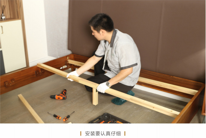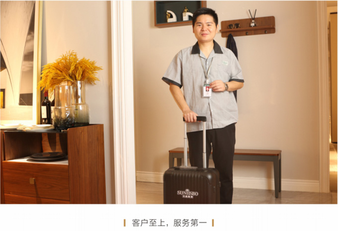 安装并检查完所有工作后,需与客户清点并确认产品,将所有带电源的家具插上电源,告知客户家具使用方法和功能及保养知识、注意事项等。所有带功能的产品需演示给客户看。例: